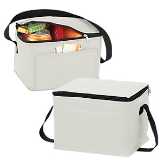 Cooler-Lonchera con bolsillo delantero. Tela exterior TNT 80grs. Tela interior PVC metalizado aislante.