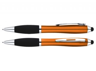 Bolígrafo "Wind Color Touch-Screen" con goma posterior negra para pantalla táctil. Escritura azul. Colores: Plata (00), Azul (02), Rojo (03), Naranjo Encobrizado (04), Verde (06), Negro (08), Morado (25). |